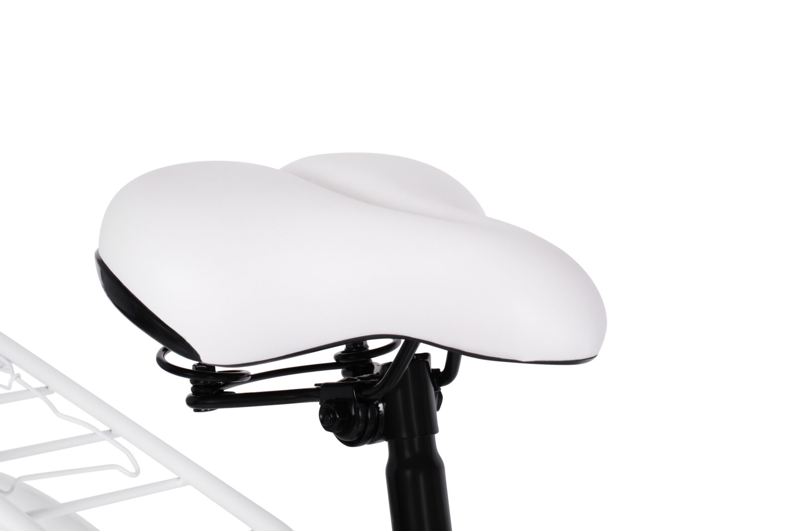 În spate există un portbagaj clasic, pe care puteți instala un scaun pentru copii, genti suplimentare sau transporta articole diverse . Bicicleta va fi livrată cu coș și tot ce se vede în poza.