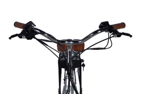 Bicicleta RUBY este echipată cu frâne mecanice pe disc față și spate, oferind o performanță excelentă de frânare în orice condiții meteorologice. Suportul de bagaje din aluminiu, situat pe spate, poate susține până la 25 kg, fiind ideal pentru transportul cumpărăturilor sau echipamentelor necesare în timpul călătoriilor.