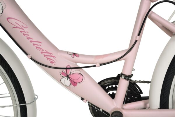 Dacă sunteți în căutarea unei biciclete sigure și confortabile pentru copilul dumneavoastră, Kands Giulietta este alegerea ideală. Concepută pentru copii cu înălțimea între 130 și 165 cm, această bicicletă oferă o experiență de condus stabilă și plăcută. Geometria cadrului este special gândită pentru a asigura o poziție corectă la ghidon, protejând astfel coloana vertebrală a copilului și oferindu-i o postură naturală în timpul plimbărilor.