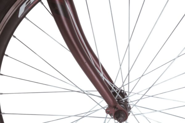 - Amortizor frontal: Cu un amortizor frontal eficient, bicicleta absoarbe șocurile și vibrațiile de pe drumurile accidentate, garantând o călătorie lină și confortabilă chiar și pe cele mai dificile trasee. Astfel, poți să te bucuri de peisaje fără a te preocupa de disconfortul cauzat de denivelări.